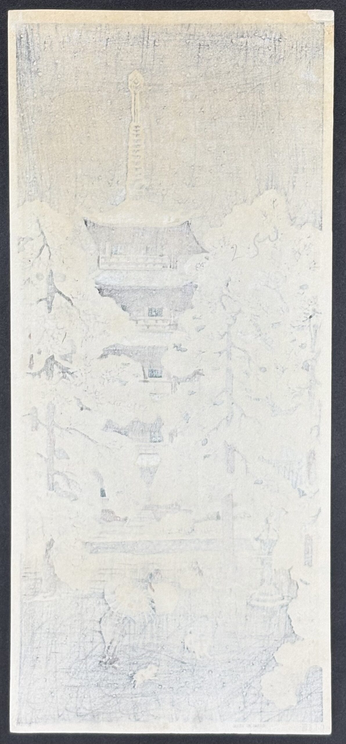 Japon – Estampe Shin-hanga – Hiroaki Takahashi Shotei – Snow at Asakusa – Rare variante – 2ème tirage